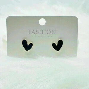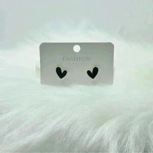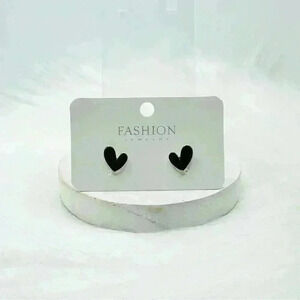 Cute Dainty Heart Stud Earrings in Black