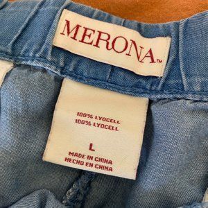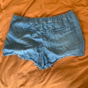 Size L, denim drawstring shorts with pockets. 100% Lyocell.