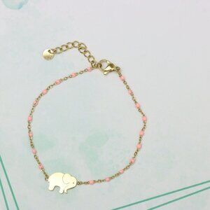 "Cute Elephant Charm Yellow Bracelet with Pink Beads, XPBL0625 Adorn your wrist with this charming yellow bracelet featuring a sweet elephant charm and delicate pink beads, perfect for everyday elegance. Crafted with gold plated high quality brass for lasting beauty and durability. ✅ Made with gold plated over high quality brass ✅ Features a cute elephant charm with pink bead accents ✅ Adjustable size: 16+4 cm (approximately 6.3+1.6 inches) ✅ Lightweight and comfortable for daily wear ✅ Perfect for gifting or personal use ✅ Secure lobster clasp closure for a reliable fit"