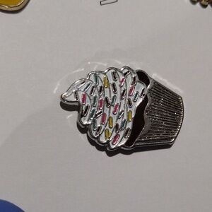 Add a playful touch to your outfits with this adorable set of 3 enamel pins featuring a cupcake, a duck, and a daisy. Perfect for accessorizing jackets, backpacks, or hats, these pins are a fun way to express your style. Each pin is crafted with vibrant colors and detailed designs, making it an ideal gift or a charming addition to any pin collection.