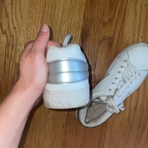 Cute gently used white and silver retro sneakers. Very comfy! EUR 39.5