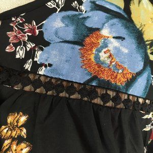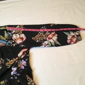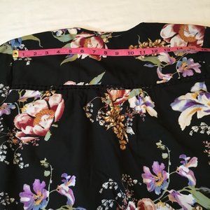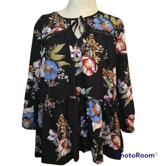 Cute Floral Baby Doll Blouse Crew Neck Keyhole Tie Closure Ladies Size Large