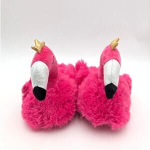 Cute Fluffy Flamingo Plush Animal Slippers Kids' Pink Size US9-10 EU25-27