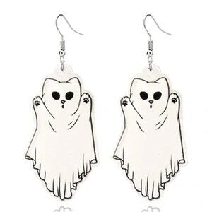 Cute Ghost Cat Earrings – Spooky Halloween Dangle Jewelry
