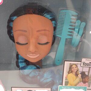 Cute Girls Hairstyles Styling Head Black with Blue Streaks 20 Piece Set NEW!