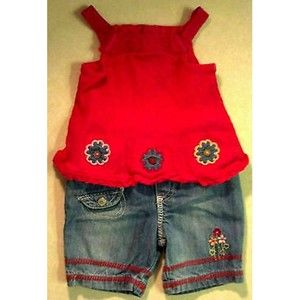 Cute Girl's Size 3-6 M Month Two Piece Pink Top & Denim Pants Floral Embroidered