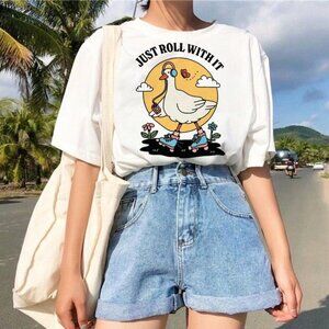 Cute Goose Tshirt, Postive Quote Tee, Trendy Just roll with it T-shirt