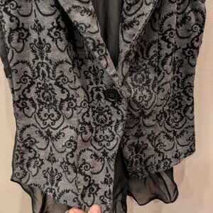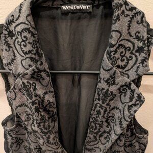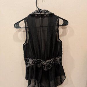 Wearever brand vest with ornate floral pattern and sheer back with decorative bow. There is one button in the front. Size XS