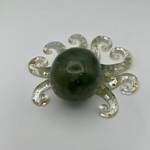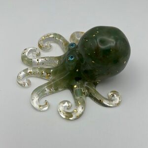 Cute Green Aventurine and Gold Foil Flakes in Resin Octopus Figurine