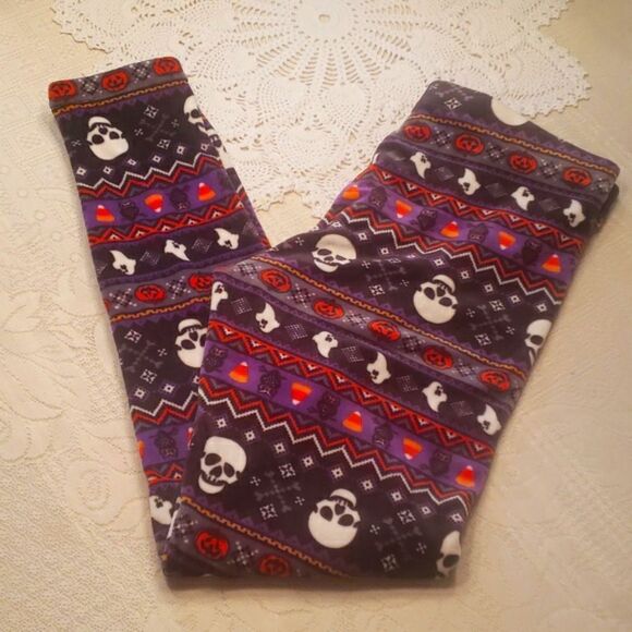 Cute Halloween Pumpkin Skull Candy Corn Buttery Soft Fleece Lounge Pants Jr Sz L (11-13)