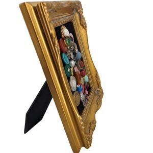 Cute Handmade Vintage BUTTON & BEAD CHRISTMAS TREE Tabletop 6x8 Gold Gilt Frame