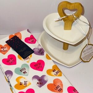 Cute Heart tiered tray and 2 pack Candy Hearts Towel Set