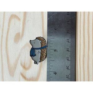 This whimsical enamel lapel pin features a charming hedgehog adorned with a vibrant blue scarf, offering a delightful accessory for nature enthusiasts or animal lovers. The intricate design and durable materials make it a conversation-starting addition to bags, hats, or jackets, ensuring it stands out wherever displayed.