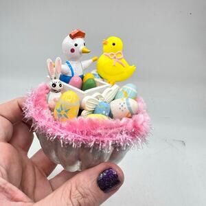 Cute Holiday Spring Handmade Assemblage Decor with Easter Bunny Chicks