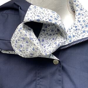 Cute Hooded Rain Jacket Parka Blue Cottage Style Floral Full Zip Women's Small