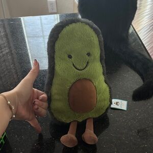 Soft and cuddly avocado plush. Features a smiling face. I think it’s medium size