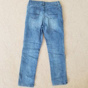 Light wash, highrise, girlfriend jeans with an adjustable waist. They are in very good condition.