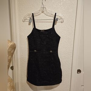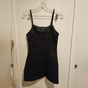 This elegant black tweed jacket and dress set is perfect for any occasion. The chic design and classic color make it a versatile addition to your wardrobe.