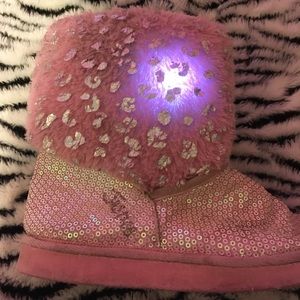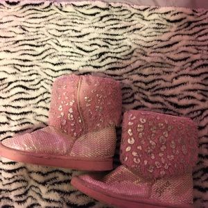 These shoes are a cute light pink colored shoe. They are great for fall and winter seasons. They have a little hole in the shoe, but it is barely noticeable. These shoes are from Justice.