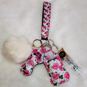 Cute keychain accessory. Contains a pom pom, a sanitizer EMPTY bottle for you to fill with your own sanitizer,chapstick holder and chapstick, lipgloss and a wristlet. Just add your keys and you're set!! The pictures are the different styles I have. The price is for 1. Send a message with your choice once purchased.