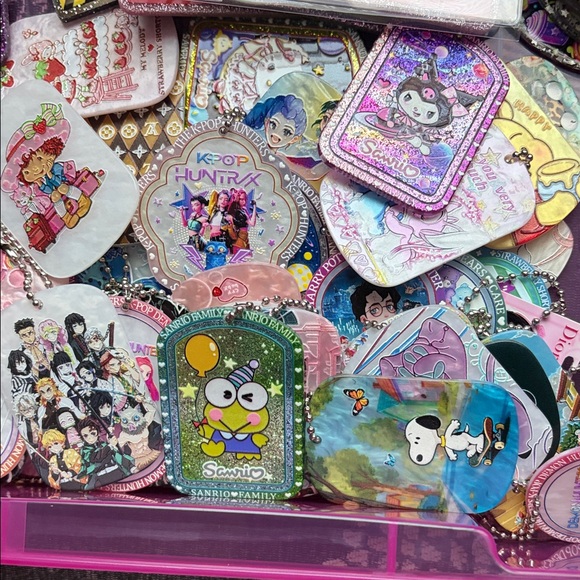 Various characters and/or designs on tags. Great to attach to your keychain, car accessory, bag charm, etc. Metal tag with attached ball chain. Cute collectible for backpacks and accessories.