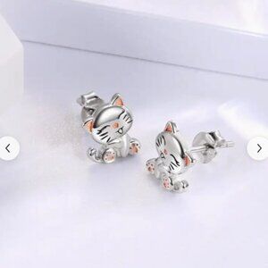 This is a Cute Kitty Studs Fashion Studs Pink and Grey Enamel design Earrings set.