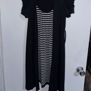 This cute black top can be worn as a dress. Has a cardigan look.