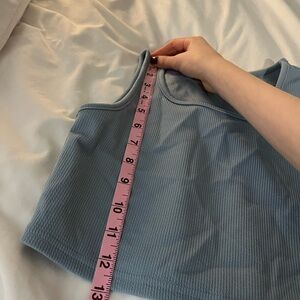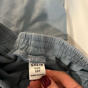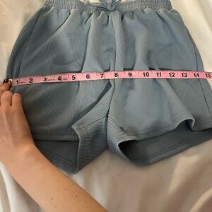 Stylish sky blue ribbed outfit. Perfect for casual wear or lounge.