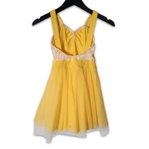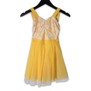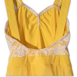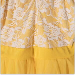 Twirl into sunshine with this charming yellow skater dress, made for summer strolls and sweet moments. The bodice features delicate white floral lace over soft lining, adding a hint of vintage romance. Adjustable double spaghetti straps pair with bold tank-style ones for a playful layered look. The flowy tulle skirt dances with every step, finished with a dreamy white trim for added flair. Lightweight and breezy, it's perfect for brunch dates, garden parties, or any day you want to feel beautiful and free. Slip it on and let your style bloom like a sunflower in golden hour glow.