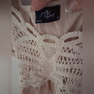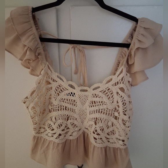 This top in cream is perfect for a concert or date night. Its delicate design adds a touch of sophistication to your wardrobe.