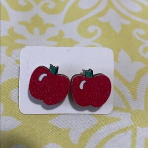 Cute! Milk Carton and Apple Earrings Set Painted Wood Hand Crafted! NWOT