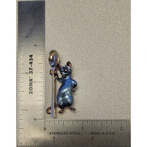 Cute Mouse with Spoon Brooch Silver Tone Whimsical Animal Jewelry Gift