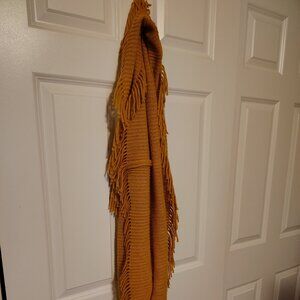 Cute Mustard Yellow Acrylic Circle Scarf w Fringe Tassels