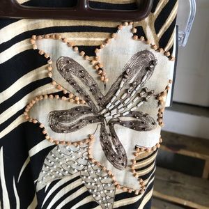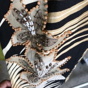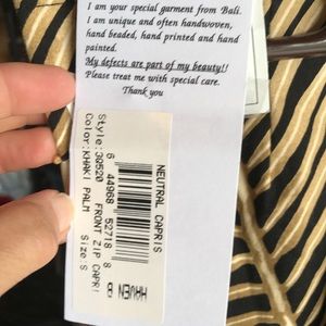 NWT size small capris from Bali. Zippers up the front. Mid rise Beautiful palm decorated and embellished with different kinds of hand sewn beads and hand painted.