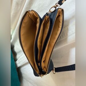 Cute Navy Multiple Pocket Bridal Clutch Crossbody Bag With Gold Tone Accents