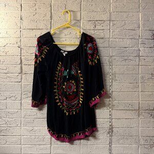🌸 Cute Options Black Boho Embroidered Peasant Top Large – Festival Hippie