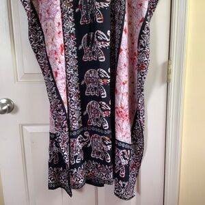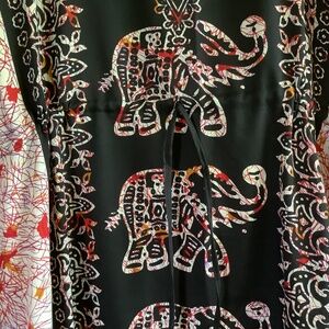 Cute Options Caftan Cover Up Maxi Elephant Print Black White Red One Size