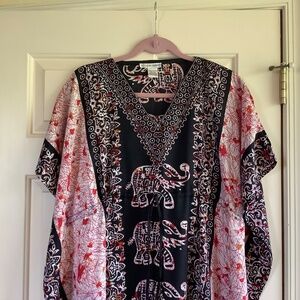 Elephant print caftan which symbolizes strength wisdom and prosperity. Can be used as a cover up or dress. Perfect for vacation.