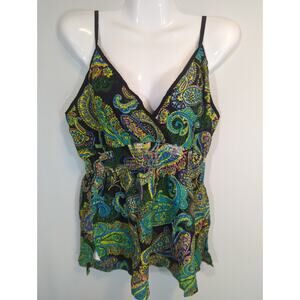Cute Options Green Paisley Babydoll Cami V-Neck XL NWT Coastal Bohemian
