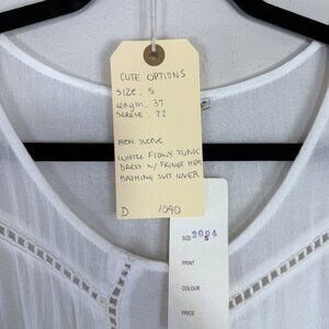 Cute Options White Boho Tunic Dress Small Bell Sleeve Fringe Hem Beach Cover Up