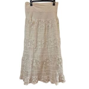 Cute Options Women's White Rayon Lace Lined Long Skirt EUC sz L