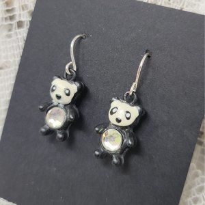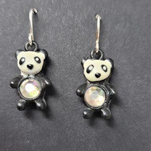 Cute Panda Bear Earrings Rhinestone Belly Pierced
