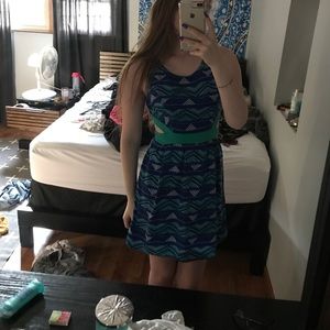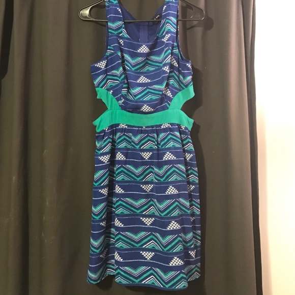 seafoam green, blue, and white patterned dress with cutouts on the sides of the waist. cutouts are a half circle shape when on. accepting offers. ✨