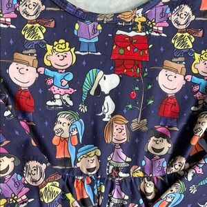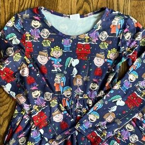Really cute, colorful Peanuts characters, Christmas theme print dress, size 8-9. Soft fabric, full twirl skirt and pockets! Dress is in like new condition, no flaws. Ships quickly from smoke free/pet friendly home.