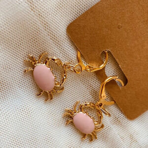 Cute Pink Enamel Crab Crustacean design Fashion earrings