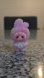 Adorable pink fuzzy figurine with a bow. Perfect for collectors.