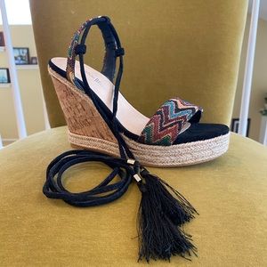 Nature Breeze sandals. So fun with velvety laces to wrap around your calf and cork platforms. Never worn.