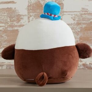 Adorable plush bird with a blue hat and orange bow tie. Perfect for cuddling.
