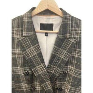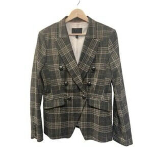 Cute Premium Banana Republic Gray Plaid Cadet Double Breasted Wool Blend Blazer