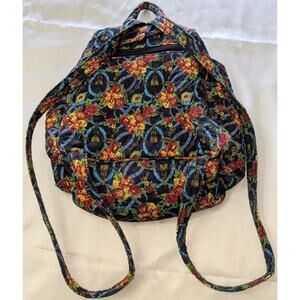 Cute Quilted Fabric Drawstring Backpack Purse Roses Floral Pattern Colorful